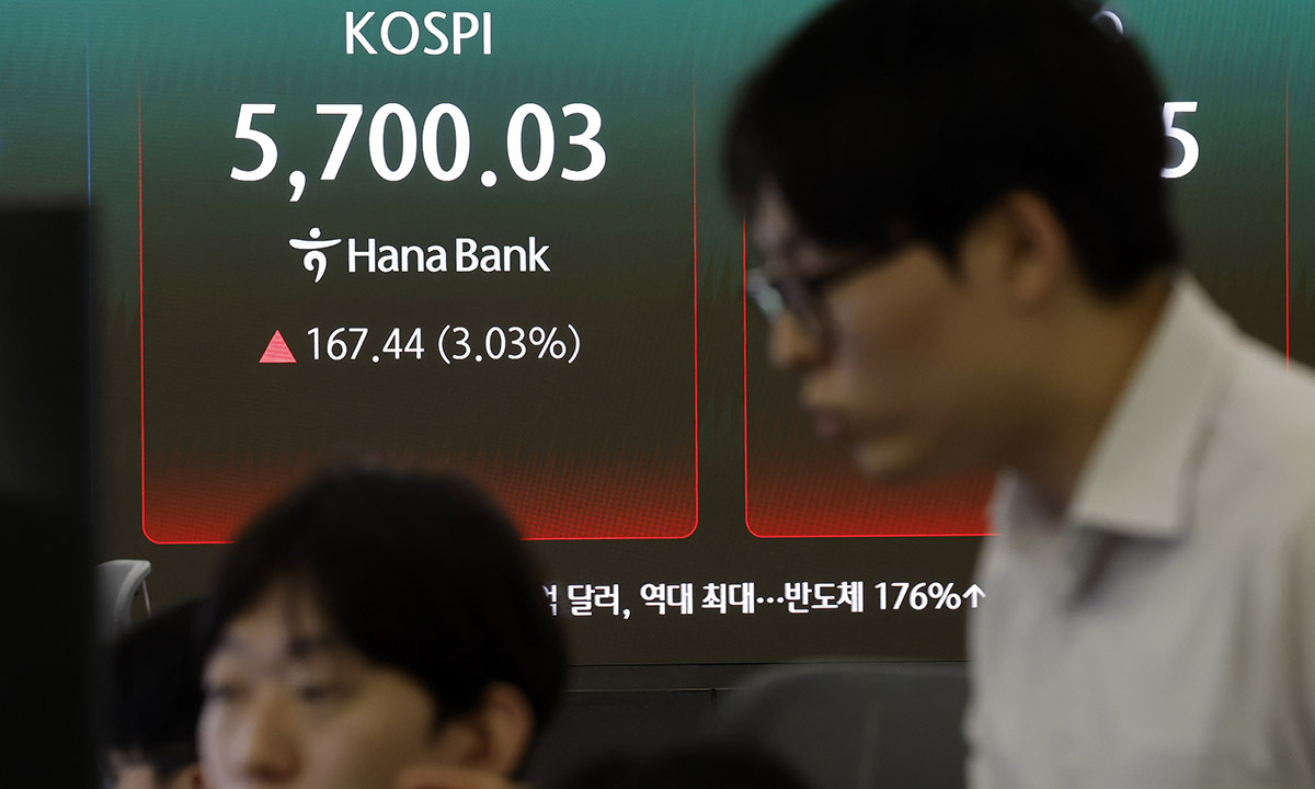 한국거래소에 따르면 코스피는 이날 전장보다 126.13포인트(2.28%) 오른 5658.72로 개장해 등락하다 5700선을 넘어 상승세를 유지하고 있다.