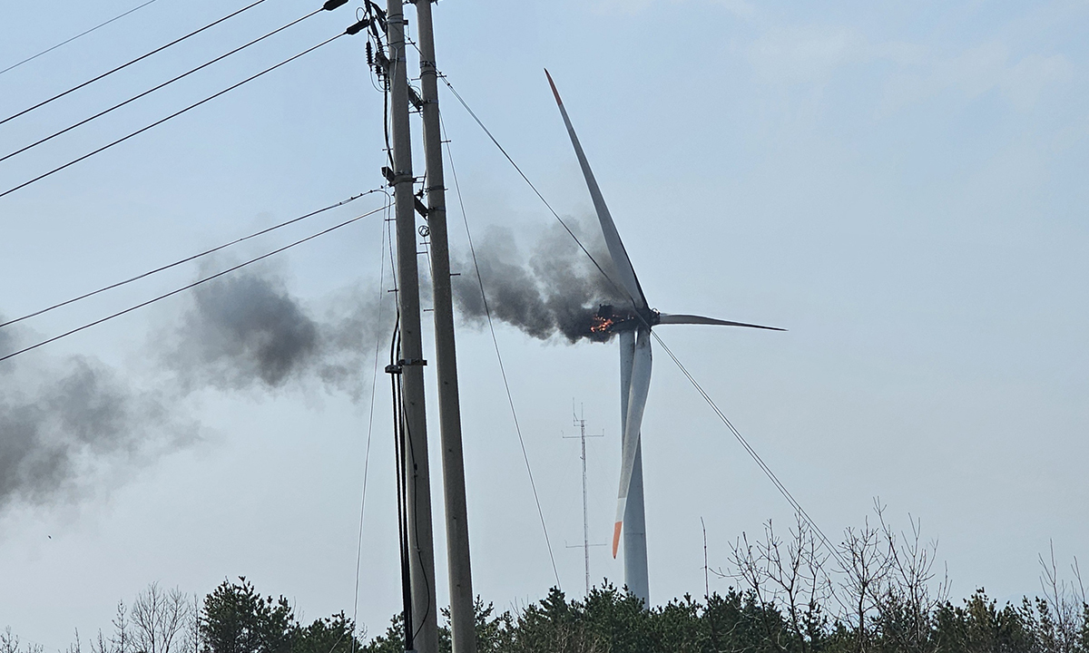 23일 오후 1시11분께 경북 영덕군 영덕읍 창포리 풍력발전단지 내 풍력발전기에서 화재가 발생했다.