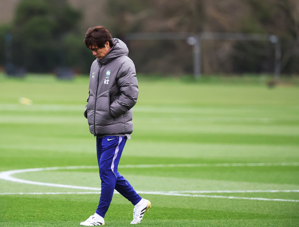 홍명보 감독이 이끄는 한국 축구 대표팀이 25일 영국 밀턴킨스의 MK돈스 훈련장에서 유럽 원정 2연전을 앞두고 구슬땀을 흘렸다. 한국은 28일 코트디부아르와 밀터킨스에서 유럽 원정 첫 번째 A매치를 치른다. 소속팀 마지막 경기에서 다친 옌스 카스트로프(묀헨글라트바흐)를 제외한 25명의 태극전사가 훈련에 임했다. 홍명보 감독은 전술 훈련의 상당 시간을 ‘스리백’ 구축에 할애하며 조직력을 끌어올리는 데 집중했다. 최후방 수비 라인은 김태현(가시마 앤틀러스), 조유민(샤르자), 김민재(바이에른 뮌헨)로 구성됐으며, 좌우 윙백에는 엄지성(스완지시티)과 설영우(즈베즈다)가 각각 배치돼 공수 밸런스를 정밀 점검했다.