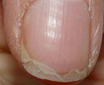5. 안으로 패인 손톱 손톱 끝이 얇아지면서 중앙이 내측으로 곡선을 그리고 있는 현상은 철분 부족이 아주 심한 경우에 흔히 나타난다. 철 결핍성 빈혈이나 관상동맥 질환, 간 질환 등을 의심해봐야 한다.