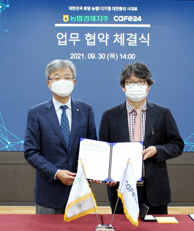 농협(회장 이성희) 경제지주는 30일 농협중앙회 본관에서 글로벌 전자상거래 플랫폼 카페24(대표 이재석)와‘국산 농식품의 국내외 전자상거래 판매 활성화를 위한 업무협약(MOU)’을 체결했다.
