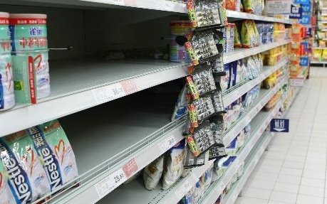 | △중국의 대형마트에서 멜라민이 검출된 제품들이 전량 수거돼 진열대가 비어있다. |