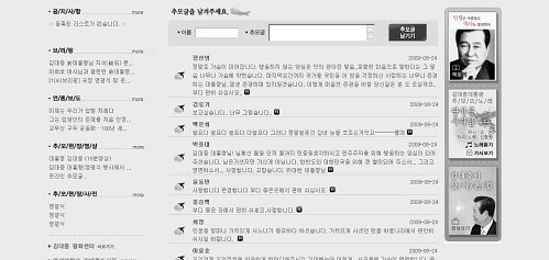 ◇김대중 전 대통령의 영결식이 끝났지만 김 전 대통령 추모 공식홈페이지에는 24일도 추모글이 계속 이어졌다.