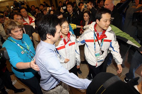 경찰과 30여 명의 공항 직원들은 짐찾는 곳에서 차량이 대기한 곳까지 두 줄로 '인간 사슬'을 만들어 길을 만들었고, 김연아와 어머니 박미희 씨, 브라이언 오서 코치를 비롯해 안무가인 데이비드 윌슨과 물리치료사는 통로를 따라 이동해 서둘러 대기한 차에 올라타고 빠르게 공항을 빠져나갔다.