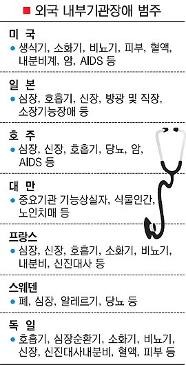 선진국들은 우리나라와 달리 세분화된 내부기관 장애 범주를 가지고 있다.