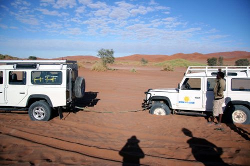 사막 구경을 모두 마치고나서 시계를 보니 아침 9시밖에 되지 않았다. 하지만 벌써 완전히 땡볕이다. 사막투어를 아침 일찍 다녀와야 하는 이유를 알 것 같다. 더위를 피하기 위해 서둘러 사막을 벗어나려는데 이번에는 우리 차가 모래에 빠지고 말았다. 저수투스와 에벤이 번갈아 운전을 하고 나머지 사람들은 밖으로 나와 열심히 차를 밀었지만 모래 속에 파묻힌 바퀴는 여간해서 밖으로 나올 생각을 하지 않는다. 땡볕을 맞으면서 우리 차를 빼는데도 역시 한 시간이나 걸렸다.