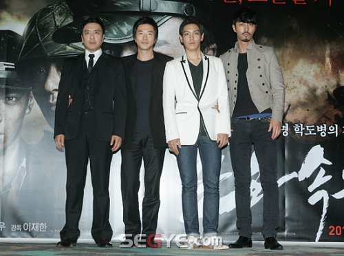 배우 김승우, 권상우, 차승원, T.O.P(최승현)이 출연하는 '포화속으로'는 1950년 8월 한국전쟁의 운명이 걸린 낙동강 지지선을 지키기 위한 남과 북의 처절한 한복판에서 교복을 입고 포화 속으로 뛰어든 71명의 학도병들의 12시간 동안의 치열했던 전투를 그린 영화로 6월 17일 개봉 예정이다.