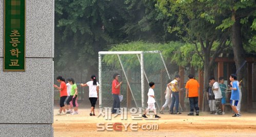 | ◇제2의 ‘조두순 사건’이 일어난 지 3일이 지난 10일 오전 서울 영등포구 모 초등학교 운동장에서 학생들이 교사 지도 아래 체육활동을 하고 있다. 지차수 선임기자 |
