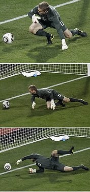 13일 새벽(한국시간) 남아프리카공화국 루스텐버그에서 열린 남아공 월드컵 조별리그 C조 1차전 잉글랜드-미국전을 지켜보던 잉글랜드 팬들은 골키퍼 로버트 그린이 어이없는 실책으로 동점골을 허용하자 `골키퍼 악몽'의 재현에 탄식을 금치 못했다.