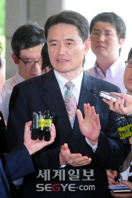 | 사찰 피해자 ‘檢으로’ 총리실 민간인 불법사찰 피해자인 김종익씨가 7일 오후 검찰 조사를 받기 위해 서울중앙지검에 도착해 기자들의 질문에 답변하고 있다. 송원영 기자 |