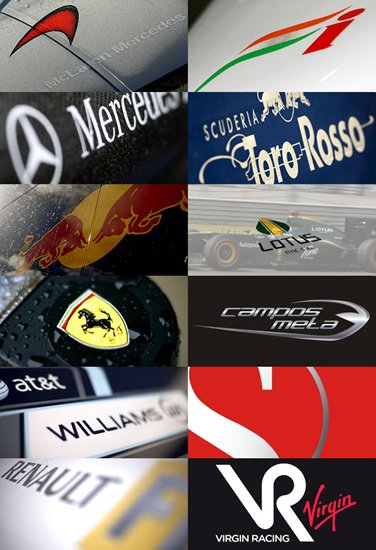 곧 다가올 2010 코리아 그랑프리에서 달리게 되는 12개 팀에 대해 알아보자. (왼쪽 상단부터 아래로) 멕라렌팀, 메르세데스 GP팀, 레드불팀, 페라리팀, 윌리엄스팀, 르노팀 (우측 상단에서 아래로) 포스 인디아팀, 토로 로소팀, 로터스팀, HRT팀, 자우버팀, 버진팀 우선, 현재 팀 순위 1위를 달리고 있는 레드불(Red Bull)팀이 있다. 지난 7월부터 LG전자가 후원사가 되면서 F1 관련 국내 행사에 등장하고 있다.