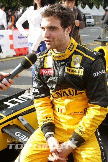 [세계닷컴 제휴사=탑라이더]3일 오후 서울 종로구 태평로 일대에서 개최된 '르노삼성자동차와 함께 하는 르노 F1팀 시티 데모' 행사에서 '르노 F1팀 드라이버 제롬 담브로시오'가 도로 주행 후 인터뷰 하고 있다.