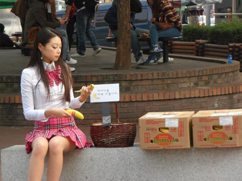 홍대 '계란녀', '사과녀'에 이어 이번에는 바나나를 나눠주는 '바나나녀'가 등장해 눈길을 끌고 있다.