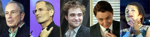 | ◇왼쪽부터 마이클 블룸버그, 스티브 잡스, 로버트 패틴슨, 빈세트 카세이저, 제인 시베리 |