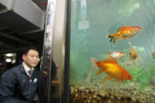 | ◇'정상회의장 물 금붕어가 최종점검' 9일 오후 서울 G20 정상회의장인 코엑스 지하 중수처리시설에서 코엑스 관리팀 직원이 각국 정상과 대표단에게 공급될 물의 오염도를 점검하기 위해 키우고 있는 금붕어의 상태를 확인하고 있다. 코엑스는 G20 행사 기간 회의장 화장실에 세정수를 공급하기 전에 금붕어를 이용해 물의 상태를 점검할 계획이라고 밝혔다. <연합> |