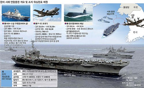 이번 서해 훈련에는 순양함과 구축함은 물론 공격용 잠수함도 참가할 예정이다. 항공모함이 한반도 인근 해상에 나타나면 북한은 물론 중국과 러시아 등이 극도의 과민 반응을 보이는 것은 항공모함이 지닌 가공할 만한 군사력 때문이다.