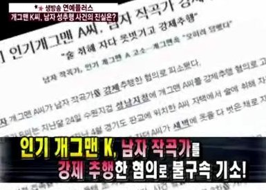 6일 방송된 MBC '기분 좋은 날'에서는 지난 5월 남자 작곡가를 강제 추행한 혐의로 고소됐었던 유명 개그맨 K씨가 이미 검찰에 불구속 기소 됐고 지난달에 1차 공판이 진행된 사실이 밝혀졌다고 전했다.