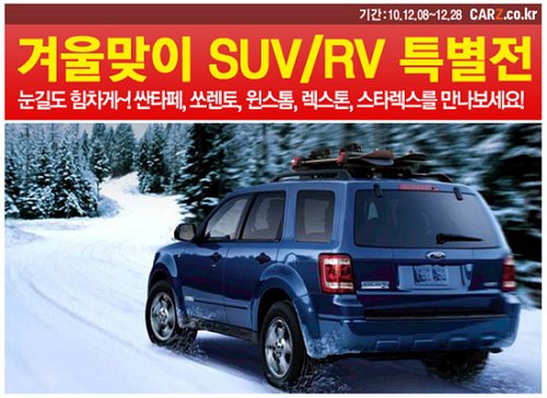 중고차사이트 카즈(http://www.carz.co.kr)는 첫 번째 대설을 맞이해 ‘SUV/RV 특별전’을 진행한다. SUV는 여름철 수요가 가장 늘어나지만 폭설과 한파의 겨울 역시 SUV가 빛을 보는 두 번째 계절이다. 중심을 잘 잡는 사람과 균형감각이 부족한 사람의 빙판길 보행이 다르듯, 험난한 오프로드를 질주하도록 설계된 SUV의 구동, 제어력은 일반 세단과는 다른 파워를 보여주기 때문이다.