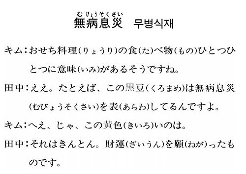 다나카 : 네. 예를 들어 이 검은 콩은 무병식재(병 없이 건강하고 재난을 소멸함)를 나타내고 있어요.