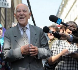 | ◇최근 프랑스 파리의 거리에서 열린 한 행사에서 기자들의 질문을 받고 있는 ‘분개하라’의 저자 스테판 헤셀. 인디펜던트 제공 |