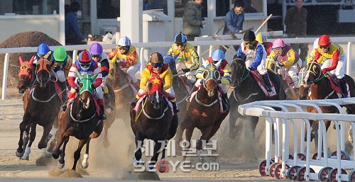 마지막 직선주로에서 2연패 도전 플로리다삭스 추월 미국산 ‘깍쟁이’가 세계일보배 대상경주(총상금 2억원)에서 우승하며 2011년 대상경주의 서막을 화려하게 장식했다.