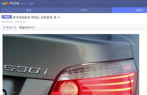 | ▲ 다음 아고라에 오른 ‘한국 여성들이 바라는 남친들의 차 ㅋ’ |