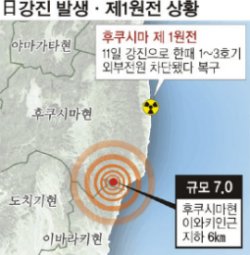 한편 일본 대지진 및 쓰나미(지진해일) 발생 1개월을 맞은 이날 오후 5시16분 후쿠시마현 이와키시 인근에서 규모 7.0의 강진이 발생했다. 진원은 북위 36.9도, 동경 140.7도이고 깊이는 6㎞로 추정된다고 일본 기상청은 밝혔다. 이날 지진이 계속 이어져 후쿠시마현 이와키를 비롯해 이바라키(茨城)현 남부에서는 진도 6이 관측됐고, 도쿄 도심 고층빌딩에서도 약 1분간 진동이 느껴졌다. 일본 기상청은 이바라키현 연안에 1m 높이의 쓰나미가 몰려올 수 있다며 쓰나미 경보를 내렸다가 50분 만에 해제했다. 이날 지진으로 후쿠시마 제1원자력발전소 1∼3호기의 외부 전원이 차단돼 50여분간 냉각수 주입이 일시 중단됐다가 복구됐다.
