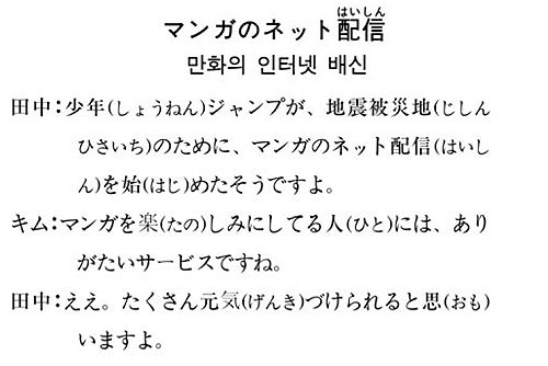역시 만화 대강국 일본이다. 각 만화출판사가 지진 피해지를 위해 인터넷으로 만화 무료게재를 시작했다. 일본에서는 매주 만화를 기다리는 사람들도 많아 만화책을 구하지 못하는 이재민들에겐 큰 힘이 될 것이다.