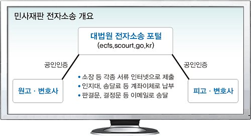 전자소송은 재판 당사자가 소장, 준비서면, 증거 등 각종 서류를 인터넷 전산망을 통해 전자문서 형태로 제출하면, 법원도 판결문이나 결정문을 전자문서로 송달하는 등 처음부터 끝까지 종이 서류 없이 진행하는 재판을 뜻한다. 대법원 전자소송포털 홈페이지(ecfs.scourt.go.kr)를 방문해 공인인증서로 사용자 등록만 하면 누구나 전자소송 서비스를 이용할 수 있다.