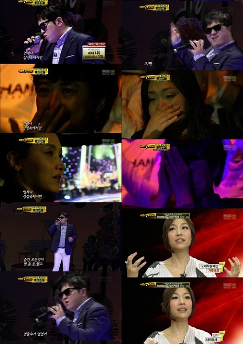 이 사진은 정형돈이 지난달 '무한도전' 디너쇼 특집에서 가수 조관우의 '늪'을 열창했던 사진과 '나는 가수다' 캡쳐사진이 절묘하게 배열되어 있다.