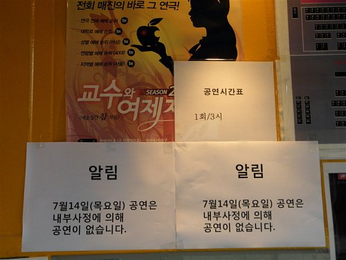 공연기획사인 예술집단 참은 '교수와 여제자2'에 '여제자'로 출연 중인 엄다혜가 자신의 여자라고 주장하는 부산 거주 30대 후반 L모씨로 인해 14일 공연을 쉬기로 결정했다.