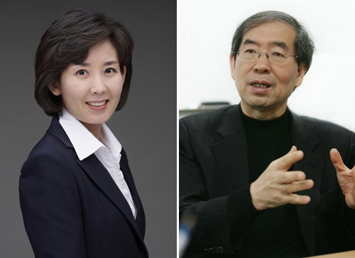 야권 단일후보로 민주당 한명숙 전 총리가 맞붙을 경우에도, 나 최고위원이 44.7%, 한 전 총리가 38.3%를 기록, 나 최고위원이 역시 앞서는 것으로 나타났다. 나경원-박원순 대결에 비해 부동층이 줄어들고 후보간 격차가 소폭 증가해, 나 최고위원이 한 전 총리를 5.5%p 앞서는 것으로 나타났다.