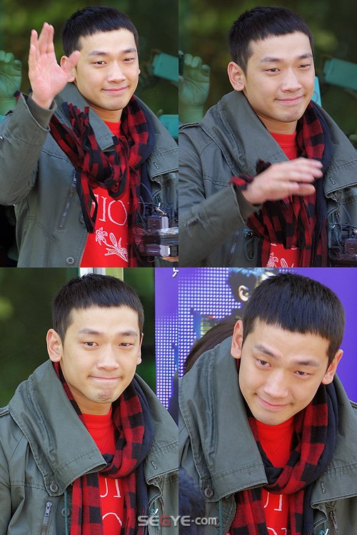월드스타 비(본명 정지훈)가 11일 오후 경기도 의정부 306보충대로 현역 입대를 앞두고 취재진들과 인터뷰를 마치고 팬들에게 인사를 하고 있다.