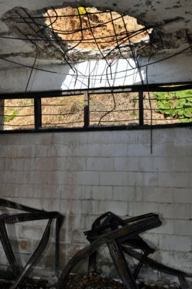 | 생생한 상흔 북한의 연평도 포격이 발생한 지 1년이 다 돼가는 20일 인천 연평도 연평해병부대의 피복 보급 창고가 당시의 처참한 상황을 말해주듯 포격의 상흔을 그대로 간직한 채 보존돼 있다. 국방부 제공 |
