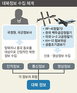 정보수집·분석 시스템 강화 목소리 김정일 북한 국방위원장 사망을 계기로 군·정보기관의 대북 정보·첩보 수집 능력이 도마에 올랐다. 북한이 특별방송을 통해 공개하기까지 김 위원장 사망 사실을 몰랐을 뿐 아니라 사망 정황, 이후 북한 내부 움직임에 대해 정확한 분석을 내놓지 못하고 있기 때문이다. 김정은 후계체제에서 북한 내부의 불안정성이 한반도 정세에 핵심 변수로 부상한 만큼 대북 정보 수집·분석 능력과 정보 공유 시스템이 강화될 필요성이 제기되고 있다.