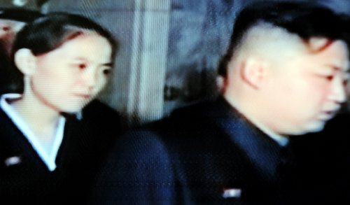 북한 조선중앙TV는 21일 김 위원장의 시신이 안치된 금수산기념궁전의 모습을 방송했다. 이 영상에서 상주 자격으로 조문객을 맞는 김정은의 바로 뒤편에 서있는 한 여성의 모습이 포착됐다.