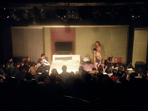 서울 대학로 챔프예술극장에서 공연 중인 '교수와 여제자2'가 24, 25일 관객들이 계단은 물론 무대 위로까지 올라와 관람하는 이상열기를 빚었다.