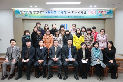 안산대학교(김주성 총장)는 지난 23일 본관 5층 대회의실에서 중국 자매대학인 ‘남통직업대학 교환학생 입학식 및 한국어학당 장학금 수여식’을 열었다.