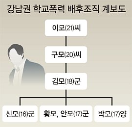 서울 강남 일대 학교 수십 곳에 상납액을 정해 주고 하청을 주는 방식으로 거액의 금품을 갈취한 ‘피라미드식 학교폭력조직’이 경찰에 적발됐다. 학교폭력에 대한 사회적인 우려가 커진 점에서 학생 폭력조직이 성인 조직폭력배에 버금가는 잔인한 범죄 행각까지 일삼은 것으로 드러났다. 특히 피해 학생들이 조직에 편입돼 자신보다 약한 학생들을 다시 폭행하고 돈을 빼앗는 가해자로 돌변해 범행이 세습되고 피라미드식 상납 구조가 만들어지는 등 ‘조폭화’ 양태를 보인다는 점에서 더 큰 충격을 주고 있다.