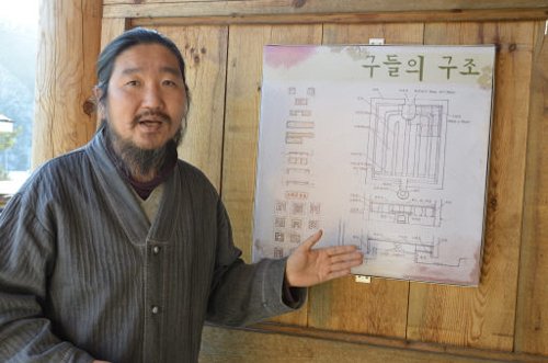 황토구들마을 김동하 이장이 서양 건축학자들도 탄복했다는 전통 구들의 원리를 설명하고 있다. |