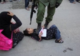 게다가 문제의 군인은 여자 어린이의 가슴 부위를 오른발로 밟은 채 총을 겨눠 네티즌의 분노를 자아내고 있다. 여자 어린이 옆에는 어머니로 추정되는 여성이 어쩔 줄 모르며 앉아 있다.