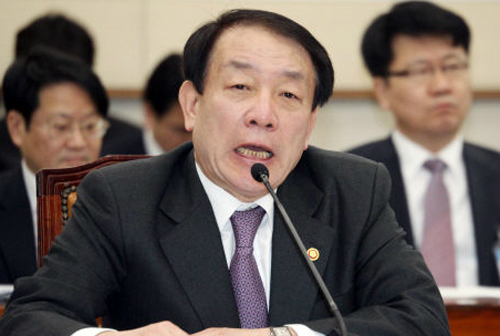 권재진 법무부 장관이 2일 국회 법사위 전체회의에서 고 노무현 전 대통령 가족과 이명박 대통령 퇴임 후 사저와 관련한 검찰 수사에 대해 적절성 여부를 따지는 의원 질문에 답변하고 있다.