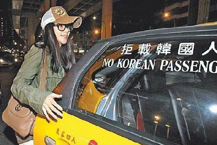 문제의 사진은 한 중화권 매체가 연예인을 취재하던 중 찍힌 것으로, 택시의 창문에 '한국인은 태우지 않는다'는 내용의 중국어 '拒載韓國人'와 영어 'NO KOREAN PASSENGER'가 선명히 새겨져 있다.