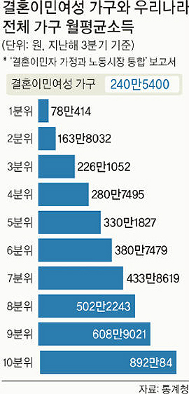 결혼이민여성 가구 월평균 소득 240만원