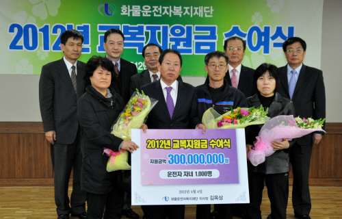 교복지원사업은 화물운전자복지재단이 시행한 올해 첫 사업으로 2012학년도 중학교 및 고등학교에 입학한 자녀가 있는 화물운전자 가정을 대상으로 지난 1월 30일부터 한 달 동안 접수를 받았는데 총 2182명이 지원했다.