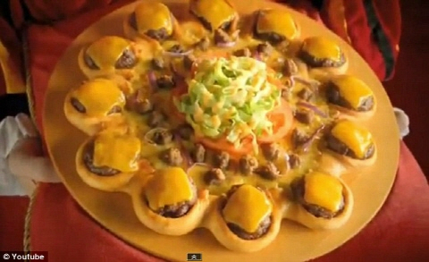 중동 지역에서는 피자 가장자리에 치즈버거를 올린 ‘크라운 크러스트 치즈버거 피자’가 있다. 칼로리가 높은 두 가지 정크푸드를 결합해놓았다.