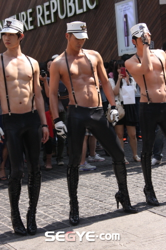 이들을 목격한 네티즌들에 따르면 ‘명동 하이힐남’ 세 명은 여성 못지 않은 곱상한 비주얼을 자랑하며, 12cm 하이힐을 신고 탄탄한 가슴근육과 아슬아슬한 치골 등 잘빠진 몸매를 가졌다는 설명이다.