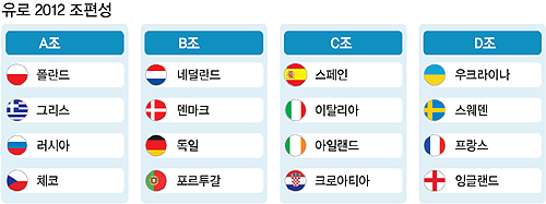 ‘죽음의 조’는 B조다. 역대 최다인 3회 우승에 빛나는 독일, 화려한 토털사커의 네덜란드, 남미와 유럽 스타일이 조화된 포르투갈, 북유럽의 강호 덴마크가 한 조에 포함됐다. 어느 팀이 8강에 오른다고 해도 결코 이상하지 않을 정도로 막강 전력을 갖췄다. 8강 진출팀은 신도 모른다는 얘기가 나올 정도다. 개최국 폴란드, 2004년 대회 우승팀 그리스, 지난 대회에서 돌풍을 일으킨 러시아, 체코가 속한 A조와 비교해 보면 큰 차이를 이룬다.
