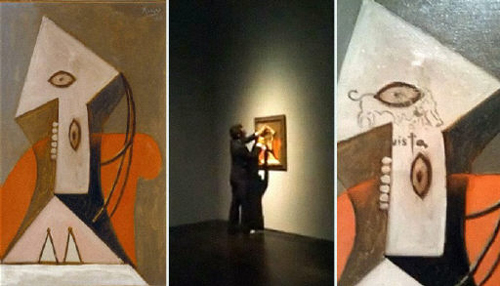방문객이 페인트 낙서 후 도주 미술관에 전시된 파블로 피카소의 작품이 스프레이로 훼손되는 사건(사진)이 일어났다.
