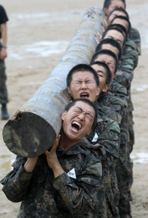 11일 오전 경기도 광주 특수전교육단에서 지난 3월 첫 모집을 통해 선발된 특공 수색병들이 목봉체조를 하며 체력을 다지고 있다.